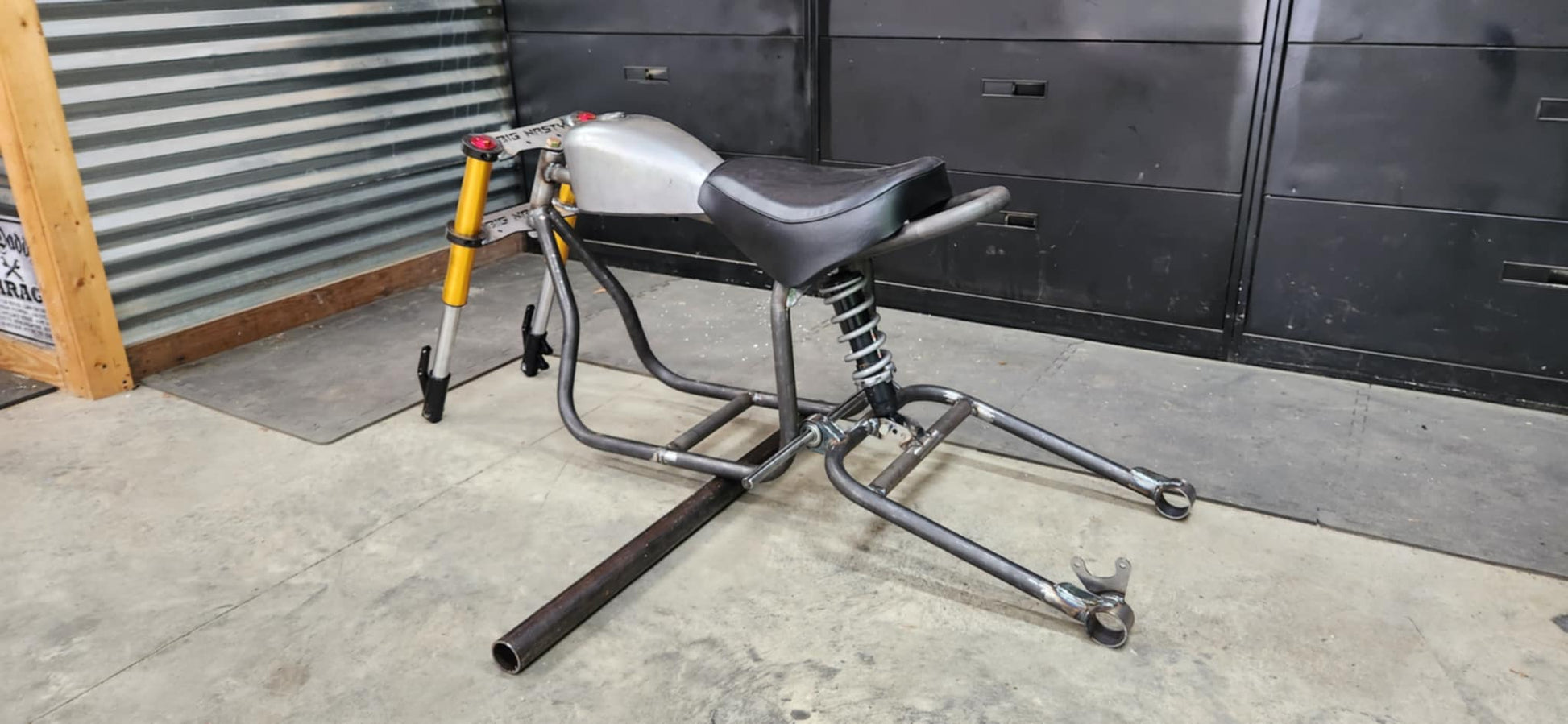 1 Main chassis, 3 possible wheelbase configurations for tires from 18" all the way to 26". Will add more details and pictures on the different forks and swingarm configurations. The original big nasty is running a 26" tire, these bikes also look great on a smaller tire like a 19 or 22. This is quite possibly the baddest "minibike" frame ever made. From the superior .095 DOM tubing construction, to the suspension geometry of modern MX bikes and dual hydraulic discs, 6 way adjustable peg placement, adjustable ride height / shock placement, Ive cut no corners on these.