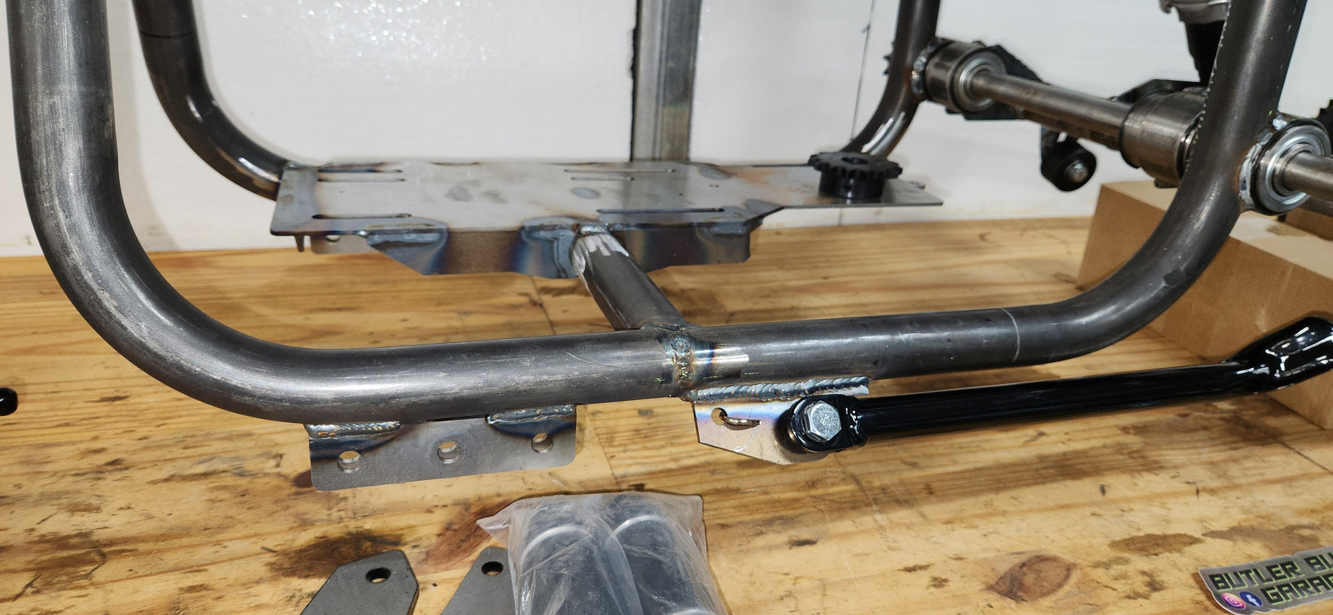 - Frame Integrated Jackshaft- Rear sprocket and jackshaft sprockets (2:1 for less chain speed and also allows for a smaller rear sprocket for more ground clearance, and easy gear ratio changes)