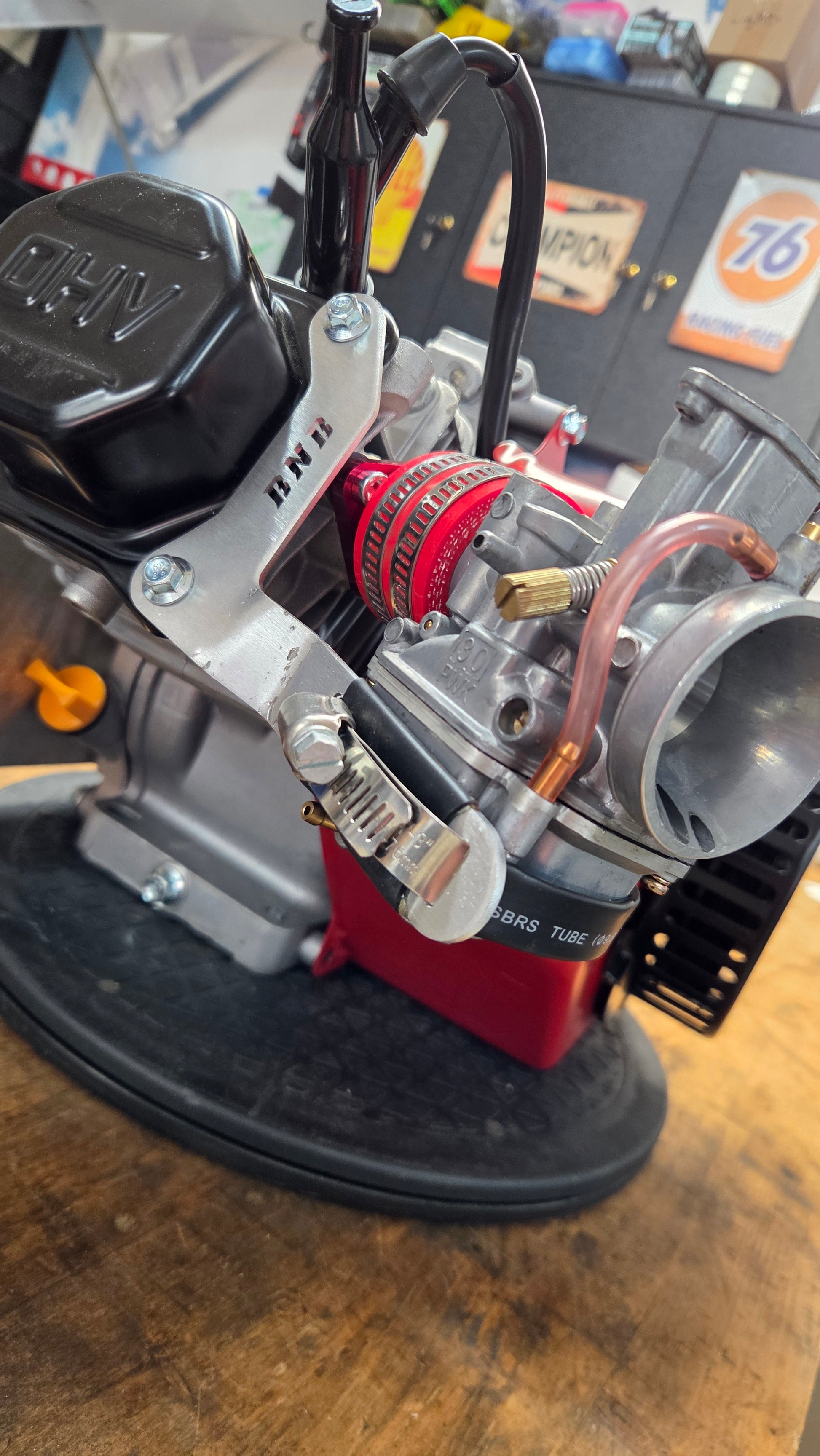 6061 T6 Aluminum carb brace kit. Support your carb to help keep from breaking intakes, carb falling off, air filter falling off from vibration. Kit comes with bracket, rubber sleeves, and hose clamp