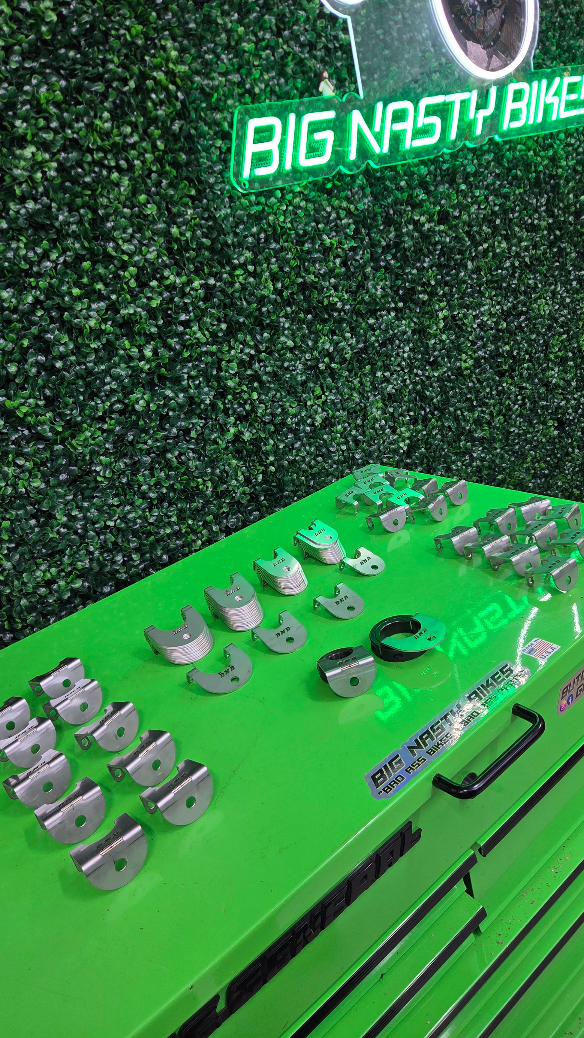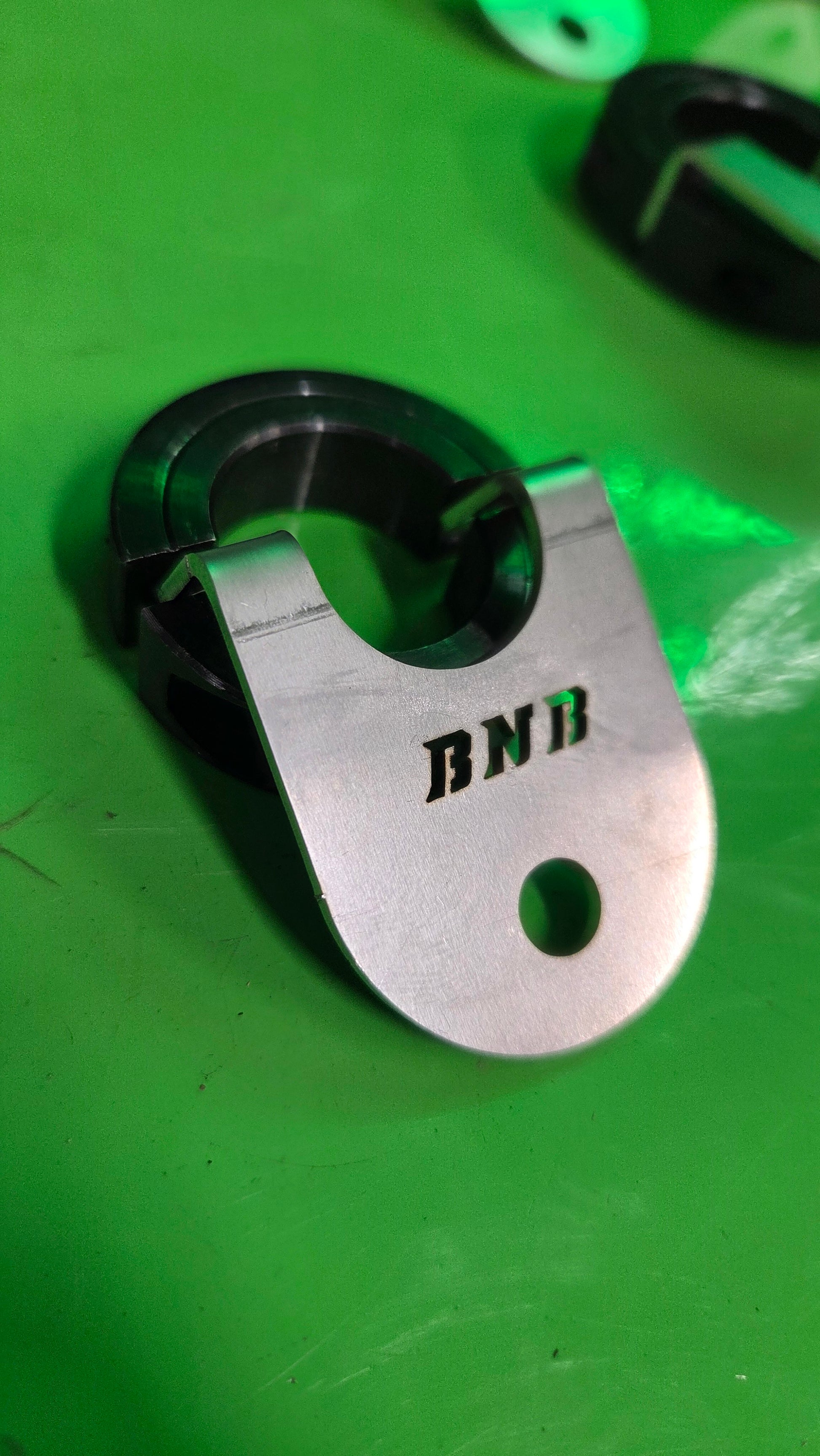 These tabs bolt on using lock collars and add a bolt hole wherever you need without welding or drilling a hole in your frame. These are available in 3/4", 7/8", 1", and 1 3/8" to fit all common frame and fork sizes. Should be extremely useful for adding steering stabilizers, catch cans, exhaust hangers, lights, etc. Made in USA with laser cut Stainless Steel